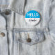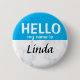 Custom Blue Hello My Name Is Template round pin button. This nametag has a bright blue background with a modern white marble pattern for your personalised name. You can change the blue background colour for your own style. Use this easy template to customise the text and name. Great for reunions, business meetings, church groups, study groups, training classes, gatherings, parties, employees, etc...