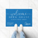 Introducing our custom open house welcome doormat, designed specifically for real estate agents. It's more than just a mat—it's a statement piece that reflects your professionalism and commitment to excellence. Shown in a classic blue and white palette with a modern elegant script font for "welcome", though all colours are editable. Personalise the template with your name and contact information as well as your logo. © Kimbellished, LLC