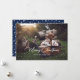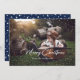 Custom blue photo Christmas cards featuring a snow overlay and a beautiful festive script title on the front and stars on a plain blue background at the back. The background can be changed to any colour. Easily personalise these blue photo Christmas cards with your image and a family name.