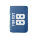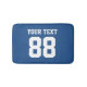 Custom blue jersey number non slip bath mat bathroom decor. Sports theme bathroom home decor accesory. Personalizable design with funny quote or team name. Sporty typography for personalised name initial letters. Athletic birthday gift idea for men women and kids. Fun accessories for fans or basketball, football, baseball, softball, volleyball, soccer, rugby, hockey etc. Pretty interior decoration for elegant bath room. Available in small, medium and large big size. Customisable background colour. Also nice for spa or beauty salon.