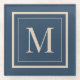 Custom Blue & Vanilla Framed Monogram Glass Coaster