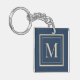 Custom Blue & Vanilla Framed Monogram Key Ring
