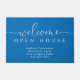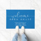 Introducing our custom open house welcome doormat, designed specifically for real estate agents. It's more than just a mat—it's a statement piece that reflects your commitment to your professional. Shown in a classic blue and white palette with a modern script font for "welcome", though all colours are editable. Personalise the template with your name, title, and contact information. © Kimbellished, LLC