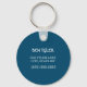 Personalized blue and white keychain, with space for your name, address, and phone number. The background color is customizable using Zazzle's design tool.