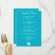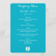 Custom blue (scuba blue) and white seahorse wedding menu with customisable text