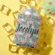 Custom Blush Pink Flamingoes Palm Leafs Pattern Can Cooler