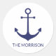 Custom Boat name nautical anchor navy blue white Classic Round Sticker
