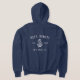 Show off your captain (or first mate) status with this cool custom design. Classic nautical style features your boat name, year established, and ship's registry in rustic white lettering with an anchor illustration. Design appears on the front pocket area and across the back.