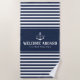 Custom Boat Name Striped Blue White Welcome Aboard Beach Towel