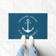 Custom Boat name or Family name, Welcome Aboard, nautical white anchor. white letters teal blue Doormat.