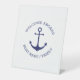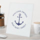 Custom Boat name or Family name, Welcome Aboard, nautical navy blue anchor and text and white Pedestal Sign