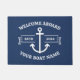 Custom Boat Name Welcome Aboard Navy Blue Anchor Doormat