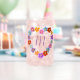 Elegant Libbey can glass, featuring your name monogram in a simple sophisticated typography style, within a classic romantic flower heart shaped wreath border. This personalised wineglass is perfect for a bridal or bachelorette party, birthdays, garden parties, or any special occasion. Toast to your happiness with your guests with this beautiful and unique party favour gift that will make your memories last forever.
