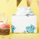 Cute blue owl wrappingpaper for boys baby shower or 1st Birthday party. Elegant wrapping paper design with name of child and cute animal cartoon. Customisable background colour ie. light pastel pink for baby girl, blue boy or neutral yellow. Cute teddybear pattern for new baby / parents (mum and dad). Preppy chic design. Make your own celebration gift wrap for grandson /  granddaughter / grandchild. Adorable kids illustration with customisable age number in balloon. Add your own name to the template. Avilable as matte or shiny glossy and more options. Funny bird with big eyes.