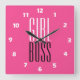 Custom Branded Girl Boss White Black Hot Pink Square Wall Clock