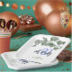 These charming baby shower paper plates have a minimalist design that is gender-neutral. They showcase elegant watercolor botanical leaves in a calming green hue, set against a pristine white backdrop. The stylish black scripted typography spells out "oh baby," providing an additional hint of contemporary flair.