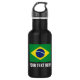 Personalised Brasilian flag stainless steel water bottles. Custom shiny metal water bottle in many colours. Great for sports teams and outdoor activities. ie basketball, baseball, football, tennis, soccer, volleyball, hiking, walking, camping, running, track and field, travel etc. Personalise with your own name, jersey number, initials or slogan in big letters. Cool modern typography. Suitable for sporty men women and kids ( boys and girls). Brasil pride. Add your own name, photo or logo design. Upload your image to this template.