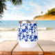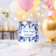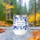 Elegant, chic wedding favour gift for bridesmaid design featuring a beautiful and modern white floral pattern on azure blue. Delicate blue frame and elegant fonts for name and party title customisation. In addition, it is a useful and long lasting favour gift for your wedding party.