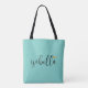 Custom Bridesmaid Script Name Light Teal Tote Bag