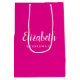 Custom Typography Script Text Name Elegant Modern Template Womens Bridesmaid Wedding Bachelorette Best Pink & White Medium Gift Bag.