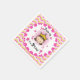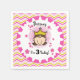 Brunette Princess 3rd Birthday paper napkins features a little princess with brunette hair wearing a golden jewelled tiara surrounded by pink flowers, text that reads I'm 3 Today, a border of chevron stripes of hot pink, light pink, gold, and white, and an area you can personalise with her name! The third princess birthday party will be off to a great start with these colourful princess paper napkins. Look for the matching paper plates, favour bags, T-shirts, buttons, bags, and more!