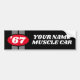 Custom build year racing stripes muscle car hot rod bumper sticker. Vintage age number decal design with striped lines. Unique Birthday gift idea for classic sports car collector, auto dealer, retro car seller, garage owner, mechanic, hot rod vehicle owner, car repair shop, auto club, tuner, car restoration hobby or business, dad, auctioneer, mum, mother, father, uncle, grandpa, brother, son, co worker, boss, friend etc. Custom year number i.e. 1967. Red and black colours. Add your company name, funny quote or monogram optionally. Also nice for new expensive supercars.