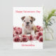 Custom Bulldog with Pink Roses Valentine Holiday Card