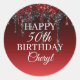 Custom Burgundy Black Glitter Drip Happy Birthday Classic Round Sticker