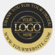 Elegant Black & Gold Custom Business Logo Company Branded Thank You Classic Round Sticker. This modern minimalist sticker features a sleek black and gold design, ideal for corporate marketing and small business branding. Personalise it with your logo using our easy-to-edit template. Perfect for adding a chic, professional flair to any package or customer correspondence. Ideal for boutiques, online shops, cafes, salons, and more. Editable and modern, it’s the ultimate branding tool for a polished, professional look.