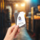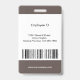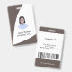 Clean custom employee badge with photo and text in modern curved standard presentation in black, brown and white colours