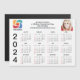 This modern business magnetic calendar is custom made with your professional company name under the the agent name in chic typography. This minimalist black and white calendar magnet features your logo on one side and personalised photo on the other. Contemporary marketing tools for a corporation in 2024. The weeks start with Sunday.