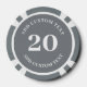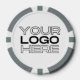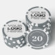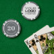 Personalised poker game chips with a custom business logo and your own text. This design in grey includes the number 20 but it can be edited with any amount.