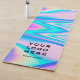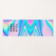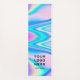 Easily personalise this Colourful purple Abstract Holographic Iridescent Yoga mat with your business logo and your custom name, featuring a y2k pink, purple and light blue unicorn aesthetic with bright neon colours and grunge and bold distressed bold graphic design details and fonts. Customise geometric design border decor colour and thickness, or leave this modern black. Perfect as unique gift idea for school, sport lovers, yoga and meditation lovers, summer vacations, namaste aesthetic gifts, 16th birthday, and any joyful, colourful occasion.