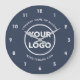 Custom Business Logo and Text Navy Blue Background Large Clock