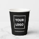 Replace the sample company logo and business website with your own in the sidebar to create black branded paper cups for your business with your logo and custom text on both sides. Your logo can be any shape. White or light coloured logos will look best on the dark background. Perfect for corporate events and at the office. You can also add a lid for each cup in the sidebar.