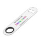 Custom Fonts and Colours - Personalised Bar Key with Your Company Logo Name Website or Custom Text Promotional Business Bottle Openers Gift - Add Your Logo - Image - Photo or QR Code / Name - Company / Website or E-mail or Phone - Contact Information / Address / More - Resize and Move or Remove / Add Elements - Image / Text with Customisation Tool. Choose / Add Your Favourite Background and Text Colours / Fonts / Size. Please see my others projects / designs. You can also transfer this designs to more than 1000 Zazzle products. Please use your logo - image that does not infringe anyone's Copyright !! Good Luck - Be Happy :)
