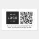 Modern and minimal business sticker design features your company logo, your custom QR code, and instructions to scan the QR code or visit a specific URL or website address. Black and white colours can be changed.