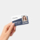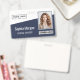Give your brand a dynamic edge with this horizontal navy blue badge design. Featuring a sharp, diagonal colour block, the layout adds a modern and energetic touch to a classic professional item. The sophisticated two-toned split effectively organises employee information and your company logo, creating a powerful and memorable visual identity.