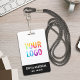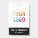 Easily personalise this custom employee name badge with your own company logo and qr code or barcode. Available with different background colours and attachments. No minimum order quantity.