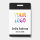 Easily personalise this custom employee name badge with your own company logo and qr code or barcode. Available with different background colours and attachments. No minimum order quantity.