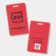 Easily personalise this custom employee name badge with your own company logo and qr code or barcode. Available with different background colours and attachments. No minimum order quantity.