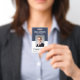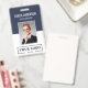 Easily personalise this blue custom employee name and photo badge with your own company logo and qr code or bar code. Available with different background colours and attachments. No minimum order quantity.