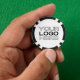 Personalised poker game chips with a custom business logo and your own text. This design in black includes the number 100 but it can be edited with any value amount.