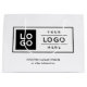Custom branded large gift shopping bags feature your logo design centred on the front and framed by custom text that can be personalised with the name of the business, location, slogan, website, or other info. White background and black text colours can be modified.