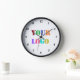 Custom Colours - Design Your Own Personalised Wall Clocks Example with Your Company Logo Branded Business Promotional Clocks / Gifts - Make Unique Your Own Design - Add Your Logo / Image - Photo or QR Code /or Text / more - Resize and move or remove and add elements / image with Customisation tool. Choose / add your favourite background colour ! Please use your logo - image that does not infringe anyone's Copyright !! Good Luck - Be Happy :) by MIGNED