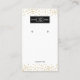 Personalised earring display cards featuring a trendy white background, your company logo, gold glitter, and company details.
