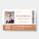 Easily personalise this custom rose gold employee name and photo badge with your own company logo and qr code or bar code. Available with different background colours and attachments. No minimum order quantity.