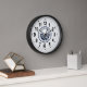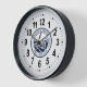 The size of the clock is dramatic and the abstract alcohol ink design is soothing and intricate at the same time. I chose the black frame that adds pop to the blue and gold design. The gold printing would be better in a slightly darker or larger font. I love it and I’m looking for just the right place in ny new apartment. I would recommend this clock for a personal gift or a present. I feel that the quality is excellent for the money! I’m a bit of a clock nut so I’m pretty particular about my purchases. The clock is larger in diameter than many if the clocks I have, so it stands out very well. I think a slightly darker printing color and a moderately larger size would best suit a professional decor or add more impact in a work place item.