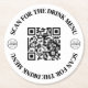 This sleek and versatile round QR code coaster is an excellent choice for restaurants, bars, or cafes aiming to enhance customer experience. The QR code can be personalised to read "Scan to see our drink menu" or "Scan to order," but the text can easily be changed for promotional purposes. The code can direct customers to social media, your website, or any other page. Featuring space for "Your Logo Here," it's perfect for corporate branding. Available in various shapes, this customisable coaster is a great way to promote your business and engage customers. Custom Text Business Logo QR Code Round Paper Coaster Menu For Bar Restaurant Cafe Custom