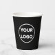 Replace the sample company logo with your own in the sidebar to create black branded paper cups for your business with your logo on both sides. Your logo can be any shape. White or light coloured logos will work best for the dark background. Perfect for corporate events and at the office. You can also add a lid for each cup in the sidebar.